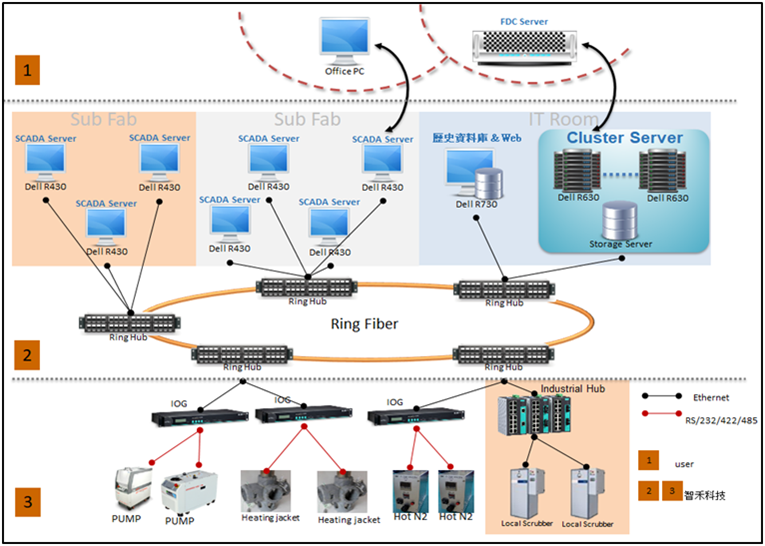 - 透过可靠先进的软硬件整合改造技术,让各种生产设备、附属设备、感测仪器的通讯界面标准化,实时进行数据的搜集与分析,大大提高工厂的安全性,数据云端化让生产管理变得更加自由便利,以达成智能工厂先驱的基石