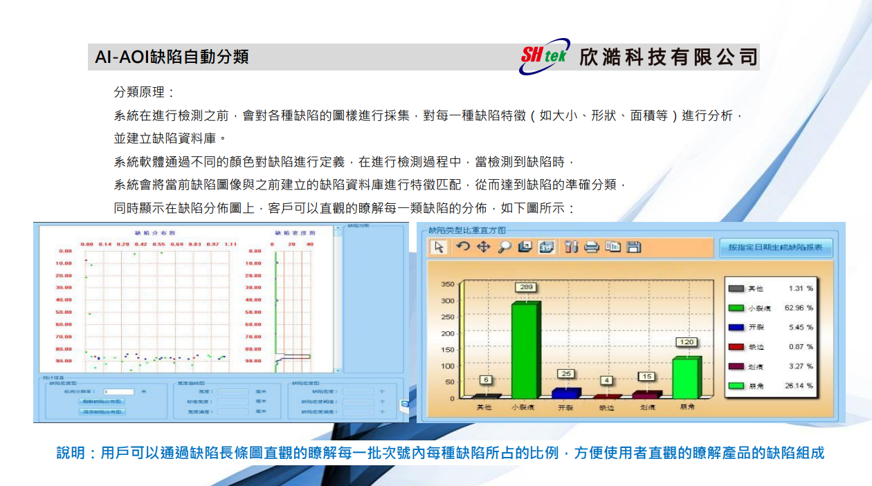 结合AI智慧运算能力,AI会自动判别及归类缺陷种类,时时反映产品的缺陷讯息,